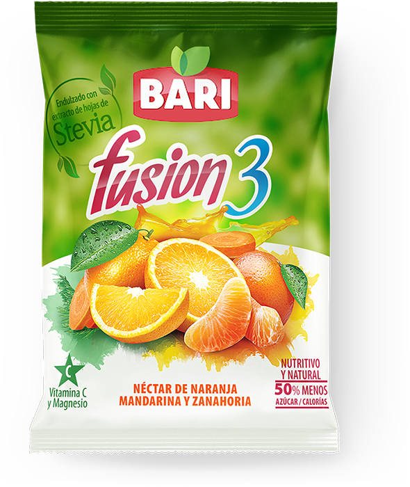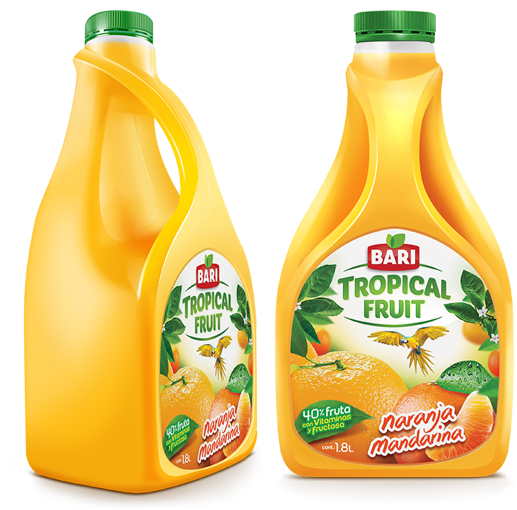 “Tropical Fruit” es una bebida en presentación familiar de 1.8L originalmente desarrollada para el mercado de Bogotá, “Fusion 3” es una bebida en polvo para preparar un litro de jugo, y “Papelón” en su presentación en panela o en bebida refrescante con limón, son los productos pertenecientes a la línea Bari.