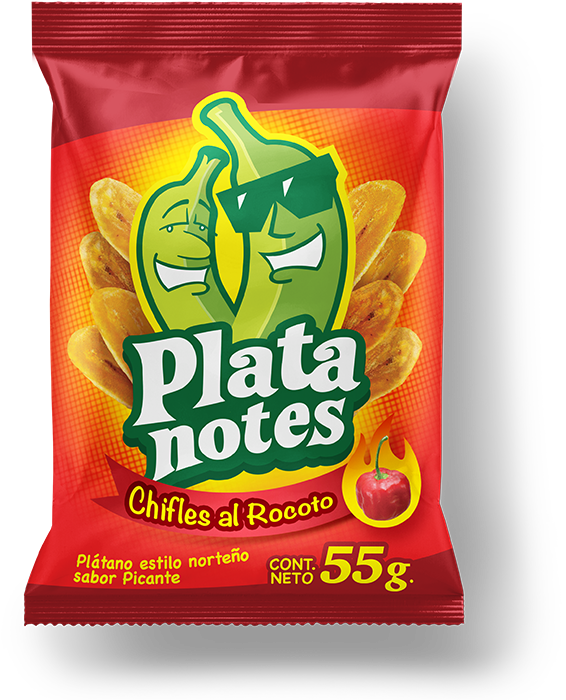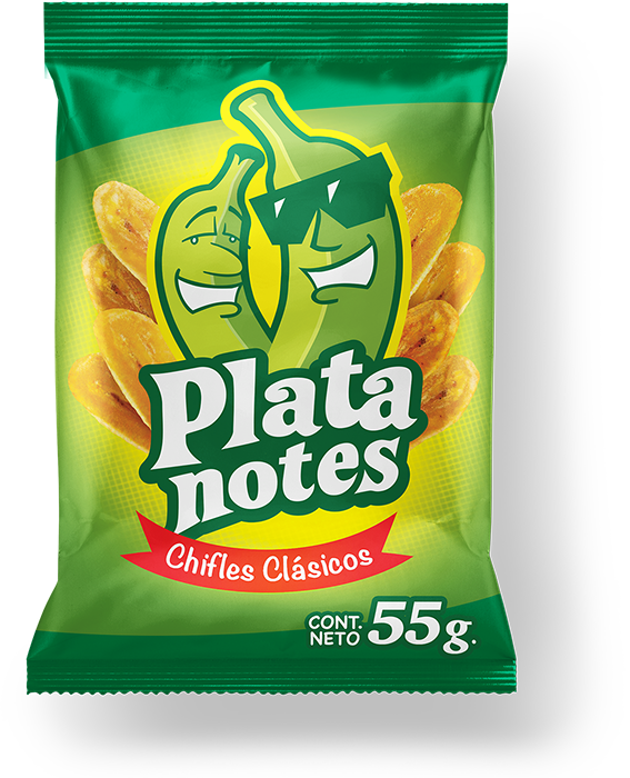 Platanotes es un snack creado en principio para el mercado peruano, son plátanos fritos con sal, el proyecto consistió en crear el logotipo y la línea gráfica de los empaques, nuestro principal reto fue que el nombre de la marca tuviera una clara connotación de “superioridad”, sugiriendo que Platanotes está por encima de la competencia.